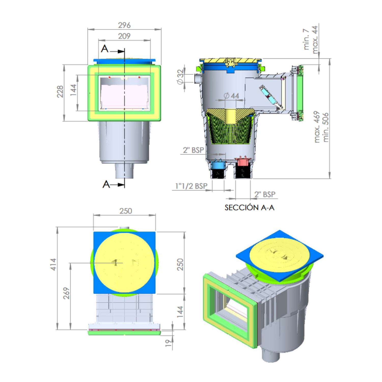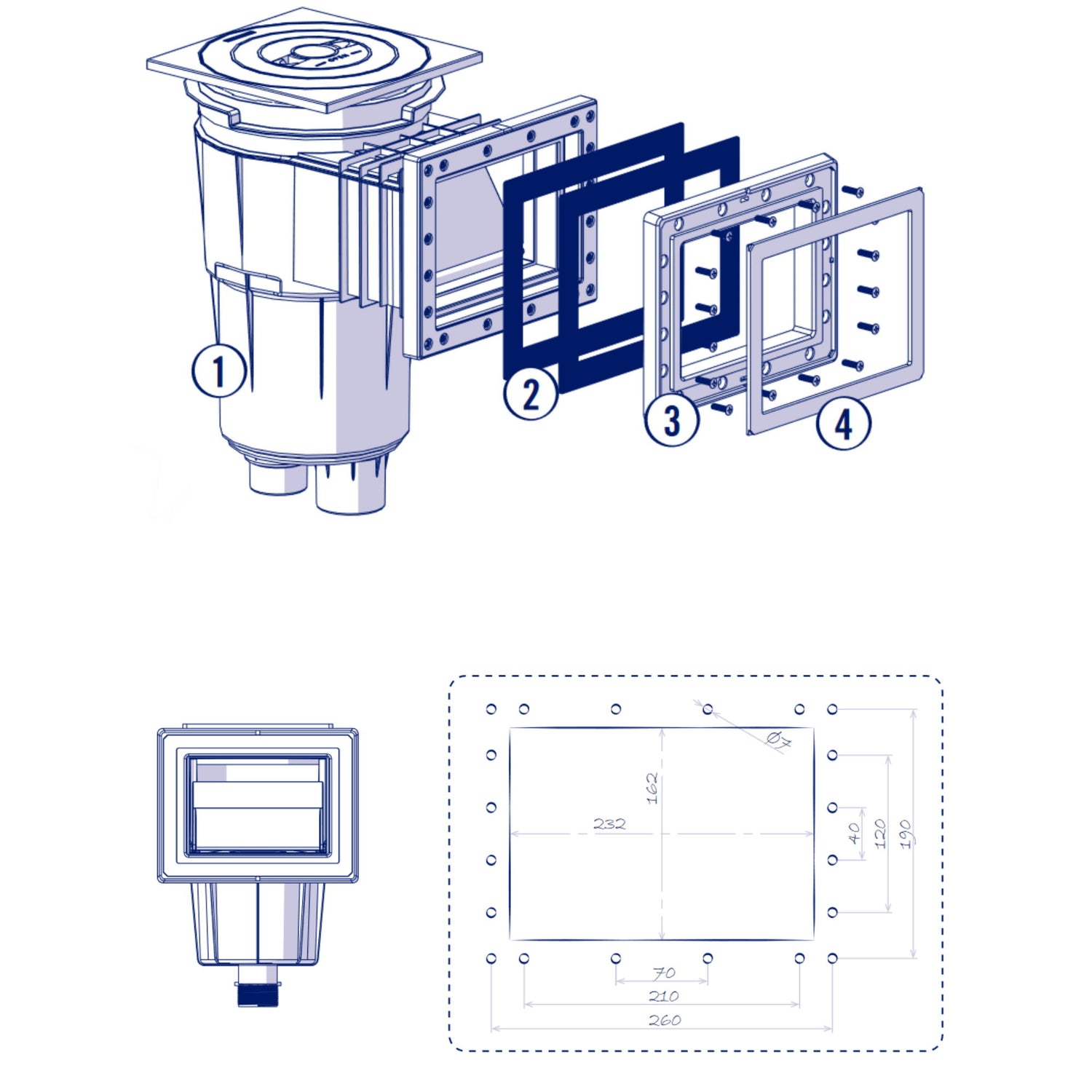 Einbauskimmer mit Standard-Saugöffnung - Deckelmitte: 265 mm