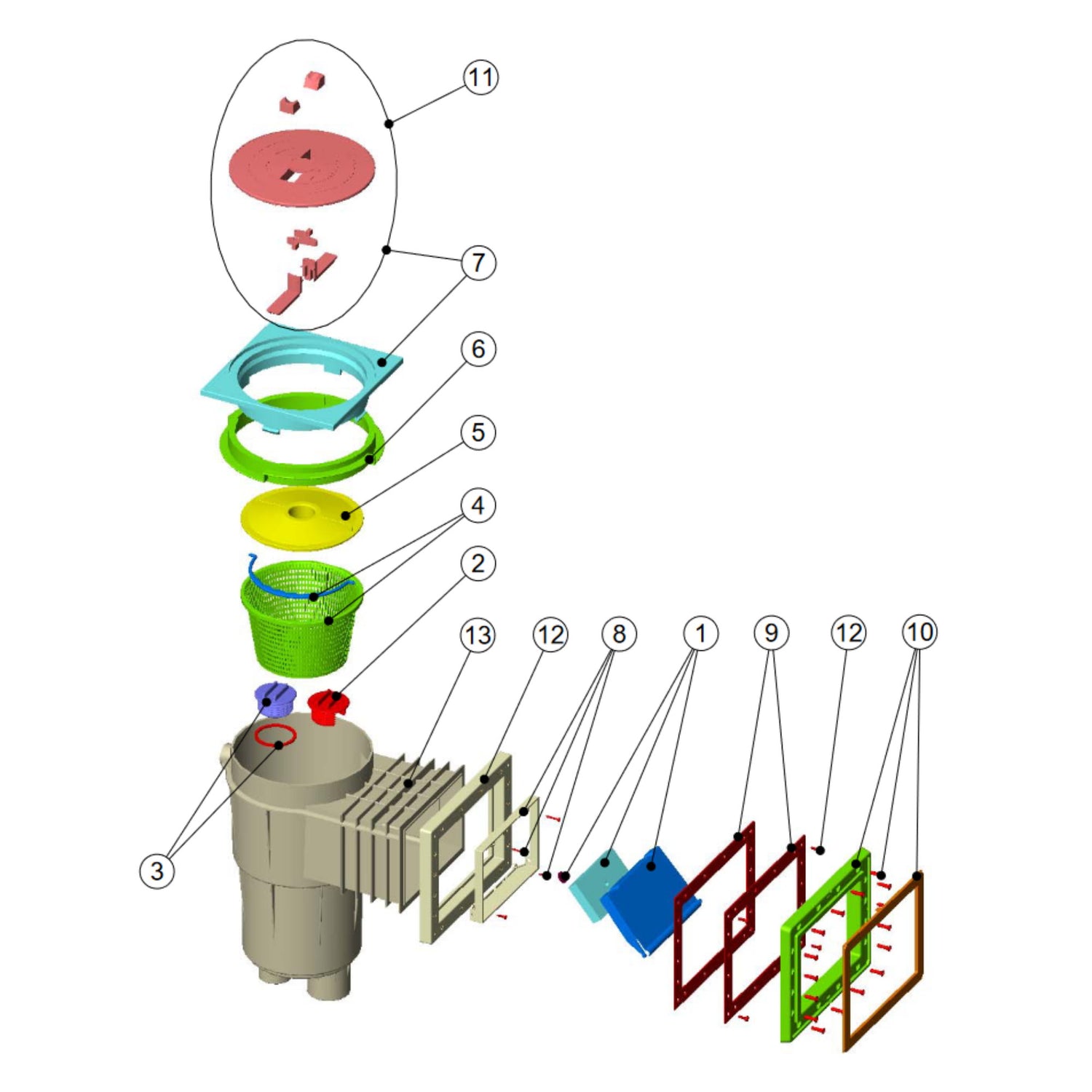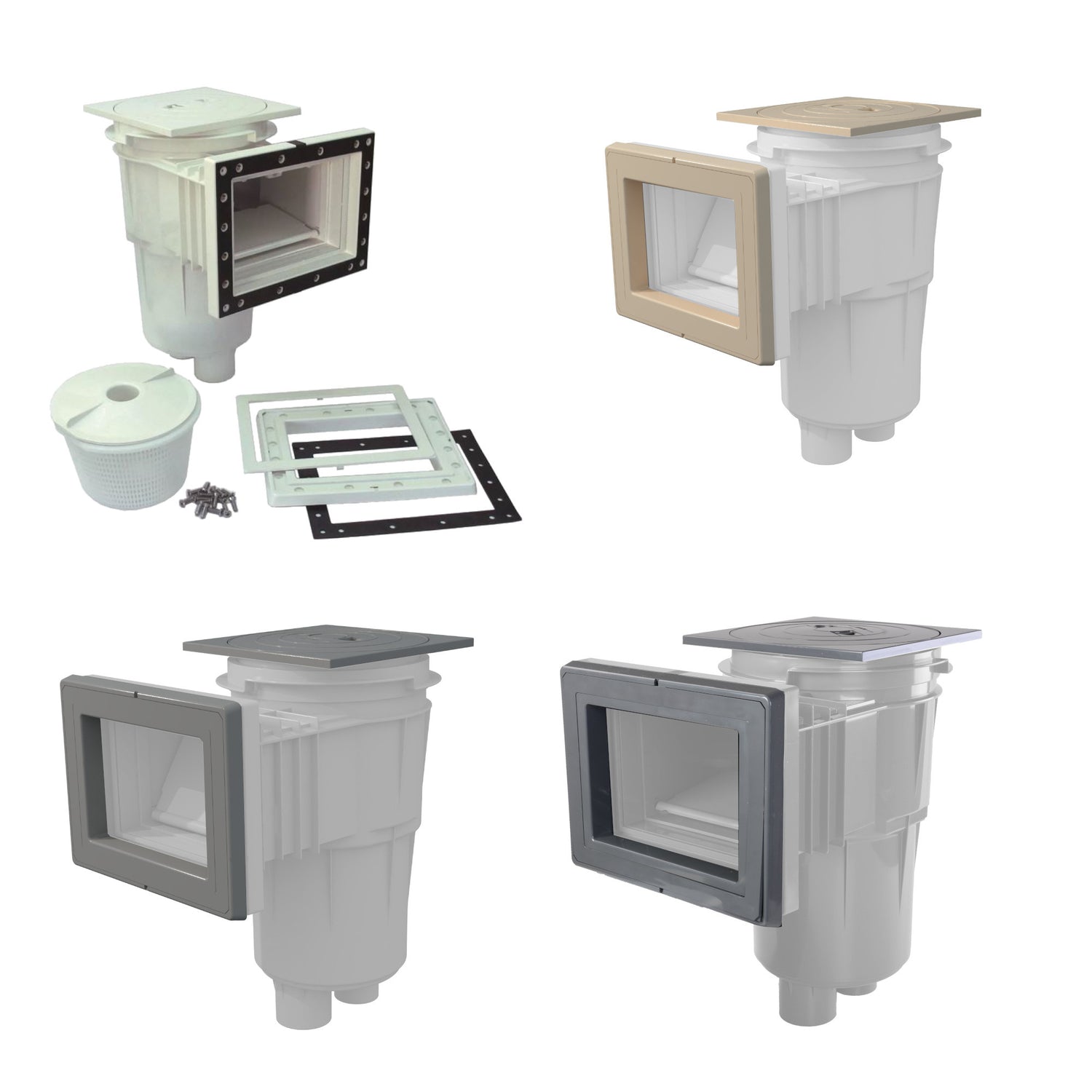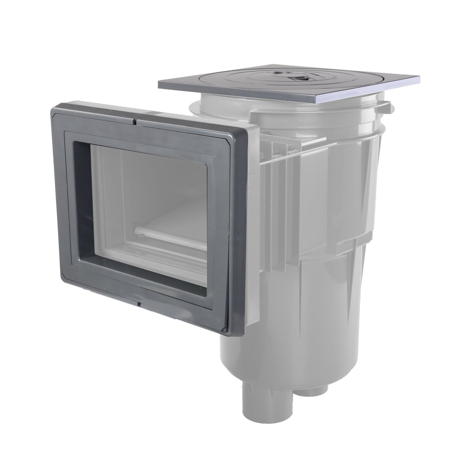 - 1 Skimmer mit Standard-Saugöffnung, rechteckiger Skimmerdeckel, Skimmerkorb