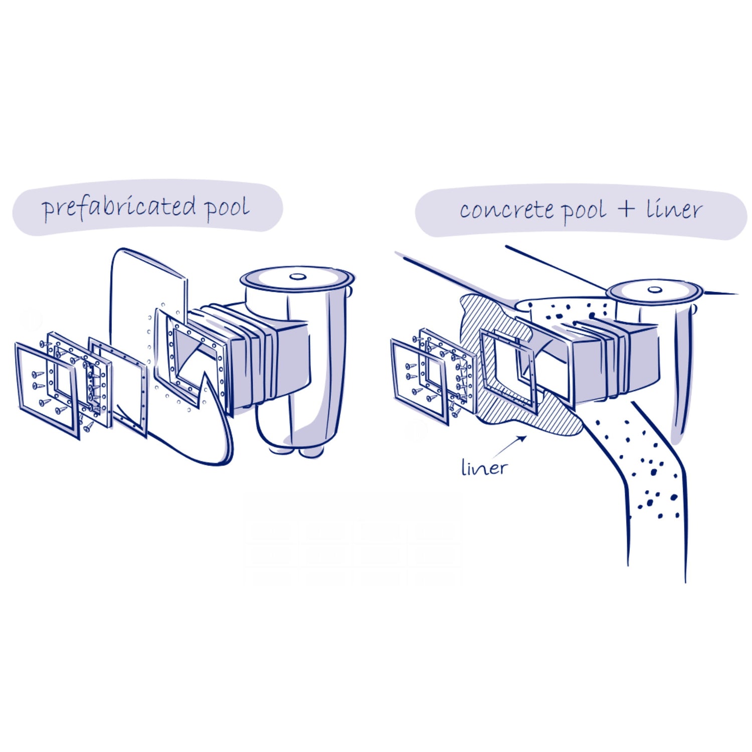 Kunststoffskimmer für PP (Polypropylen-), Beton-, Stein- und Folienbecken komplett mit Dichtungen, Flansch und Schrauben. Alle Skimmerteile sind in den Bereichen, die nicht eingegraben werden, UV-stabilisiert. Material: ABS, mit Skimmerklappe und Durchflussregelung.