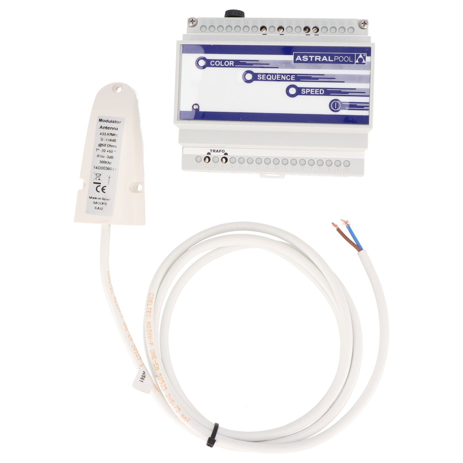 Permet de contrôler jusqu'à 15 spots (maximum 900W). Fonctions : allumage et extinction, changement de couleur, séquences et minuterie. En combinaison avec la télécommande (disponible en option) du projecteur sous-marin LumiPlus LED, vous pouvez également désactiver les couleurs indésirables dans les différentes séquences. 12 couleurs et 9 séquences sont possibles.