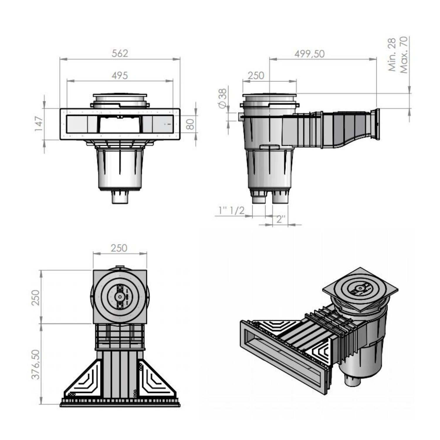 - Abstand Mitte Saugmaul bis Skimmer-Deckel: 80 - 125 mm.