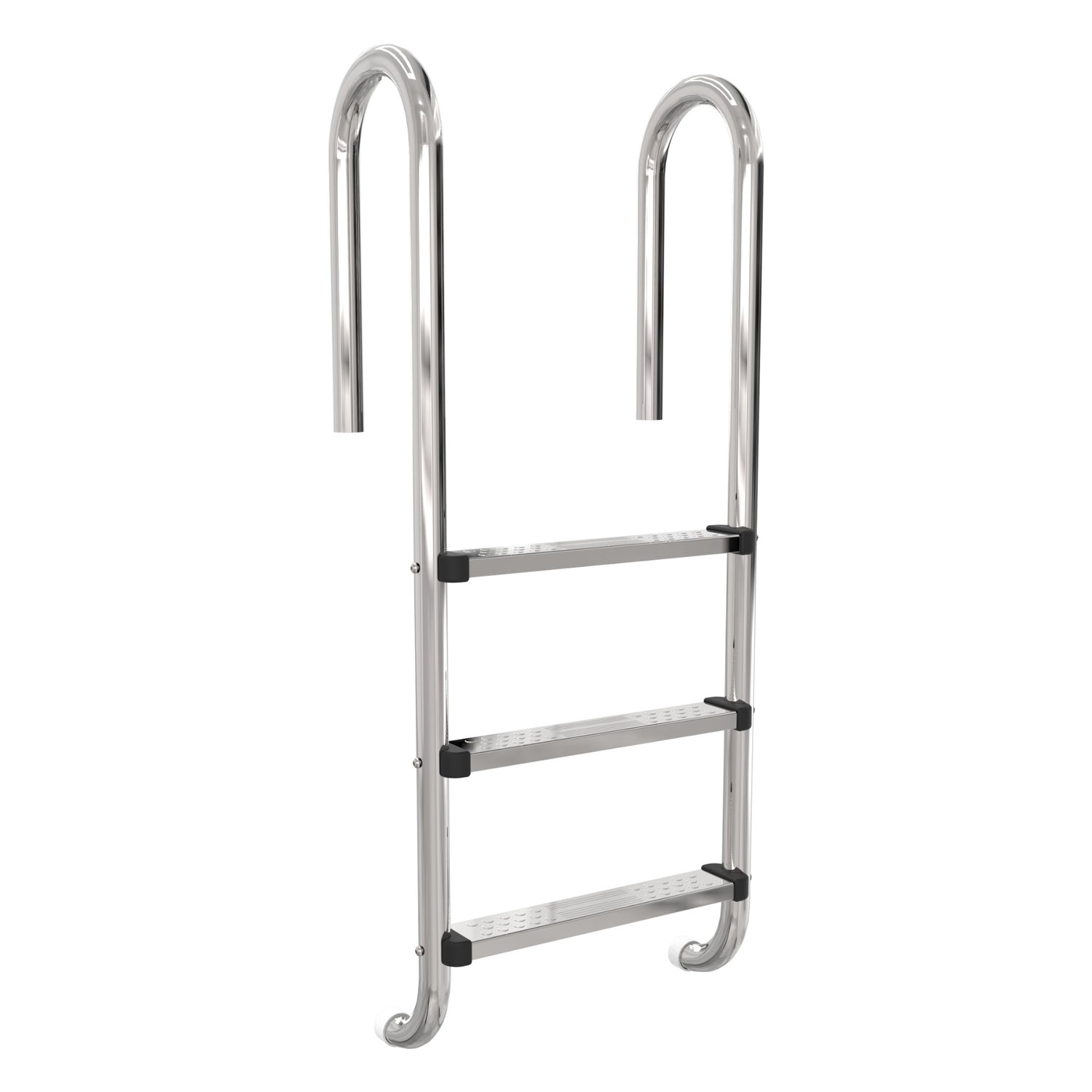 Gefertigt wird die Pool-Leiter aus rostfreiem Edelstahl V4A. Die Legierung ist sehr widerstandsfähig gegen Korrosion, dadurch sind die Schwimmbadleitern für Salzwasserpools geeignet.