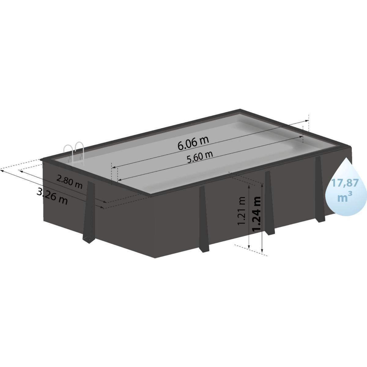 GRE Rechteckbeckenset aus Composite 606 x 326 x 124 cm inkl. LED